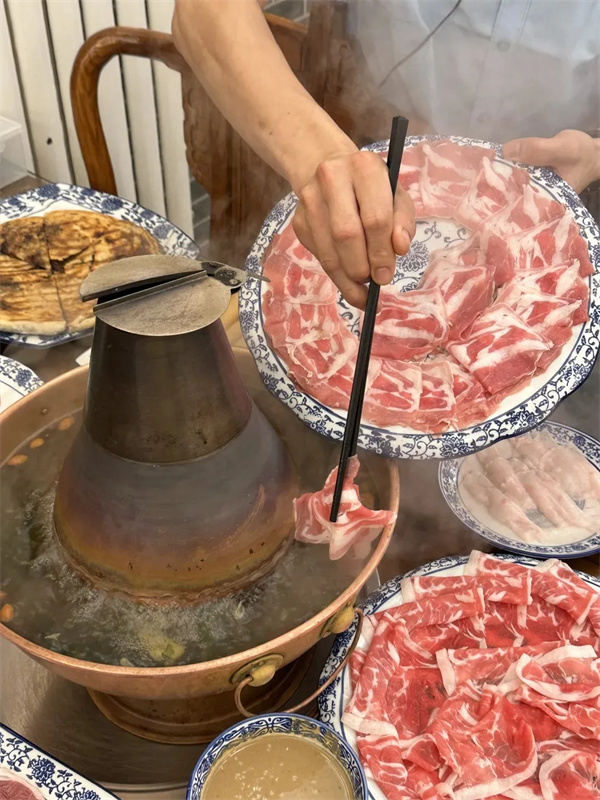 老师同步讲“烤鸭要片36刀”“铜锅涮肉用清水才鲜”的小知识,让孩子吃得到美味,也懂得到北平味道的讲究。