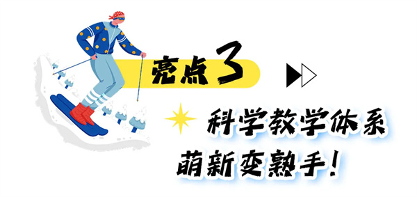 教学按“基础—进阶”循序渐进,先讲解雪具正确使用方法、雪地安全规则等理论知识,再通过分解动作示范、一对一纠正等实操指导巩固;