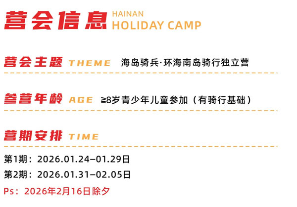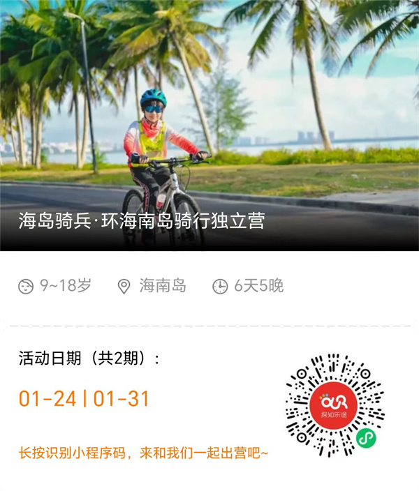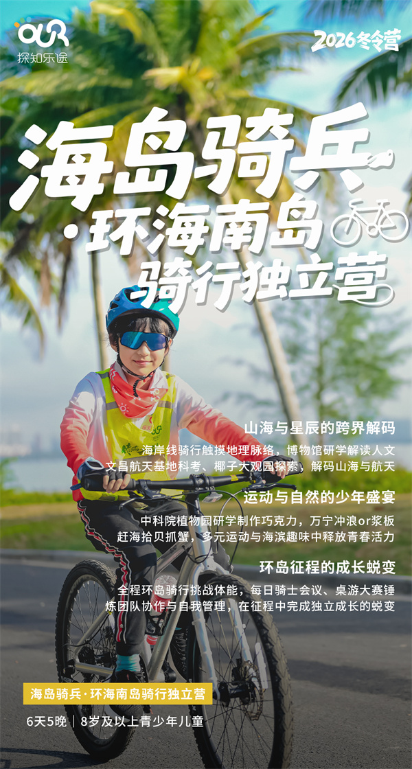 它的价值和意义在于尝试新的挑战,通过不断的突破自我,来推动和扩大能力与信心的边界,对孩子有着非凡的意义。当椰林海风与航天火箭的轰鸣交织,当火山岩岸与冲浪浪尖碰撞,一场专为少年打造的 “环海南骑行独立营” 正式开启!