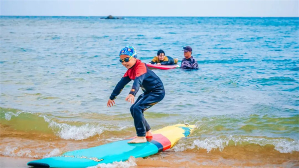 在专业教练的指导下,学习冲浪的基础理论与安全知识。如何在板上平稳趴伏、如何观察与选择一道合适的浪、最关键的是,如何在恰到好处的时机运用腰腹与腿部的力量,完成从趴伏到站立的关键一跃。而这对少年们不仅是技巧的学习,更是对身体协调性、核心力量和瞬间判断力的综合锻炼。(*也可选择体验热带雨林桨板项目)